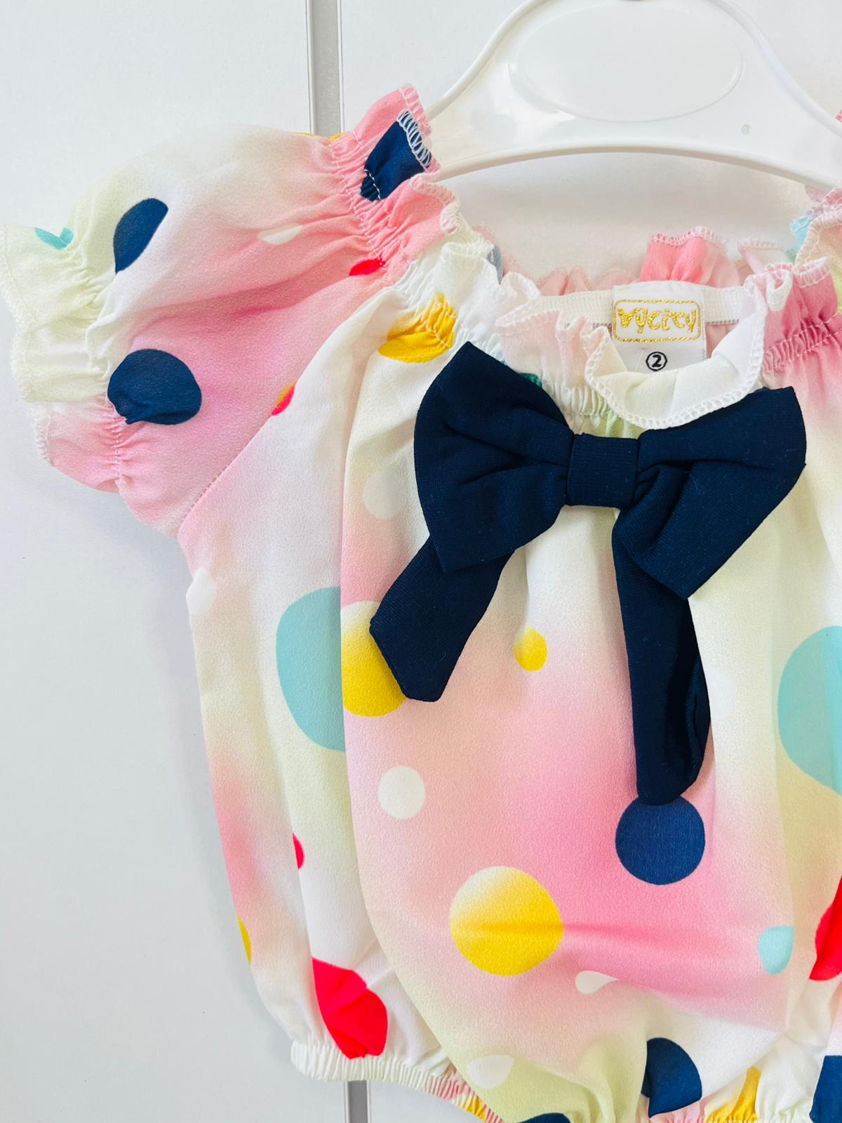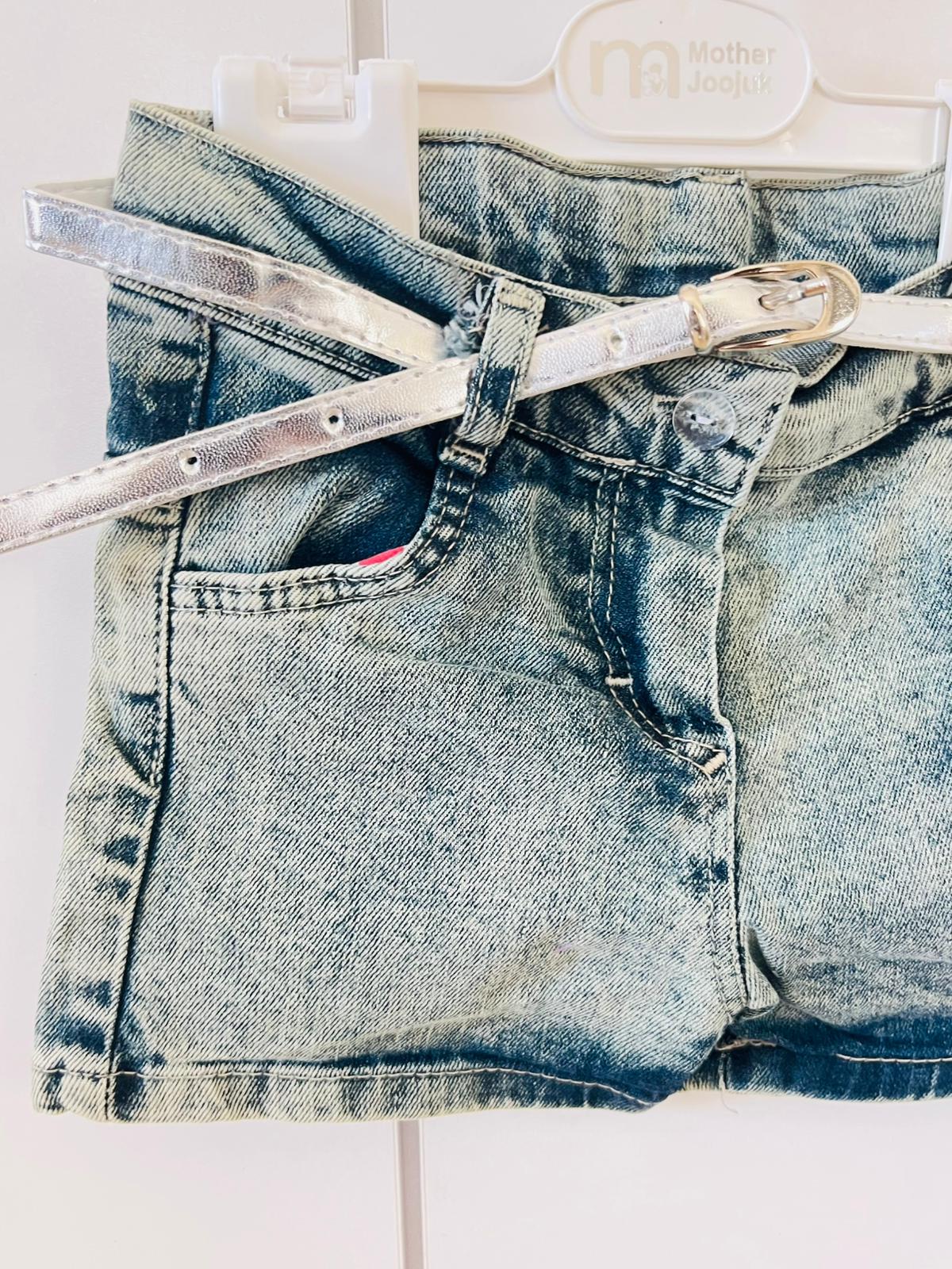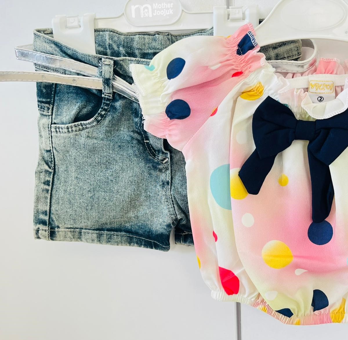 üstü puantiyeli kot şort 2’li takım