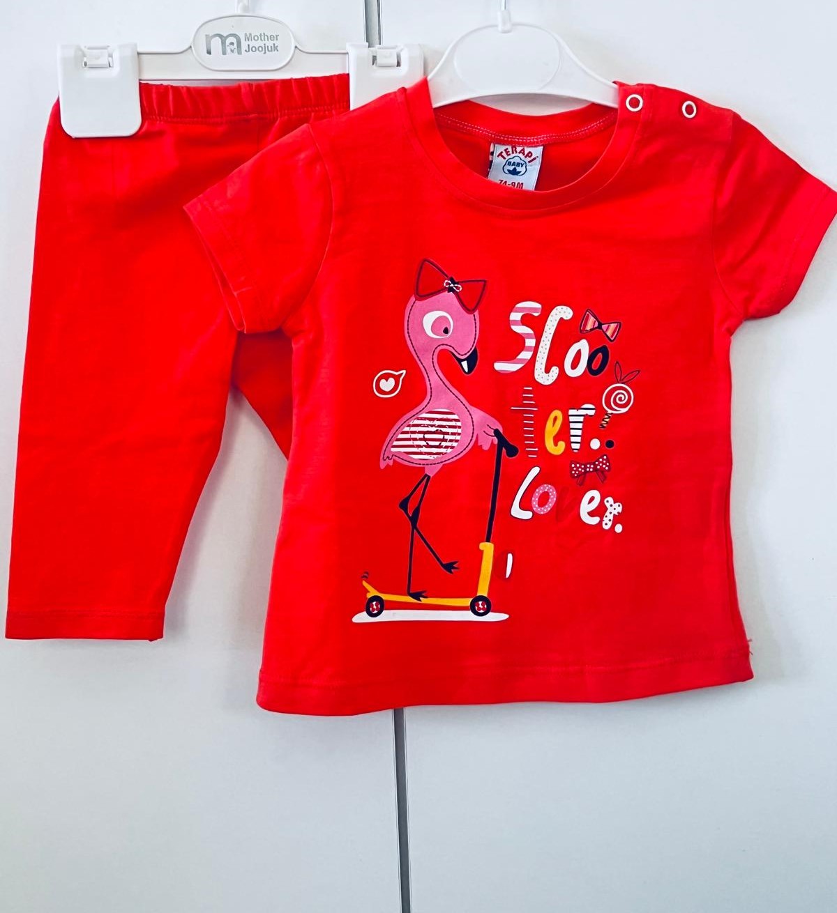 rahat ve şık flamingolu kız çocuk 2’li takım