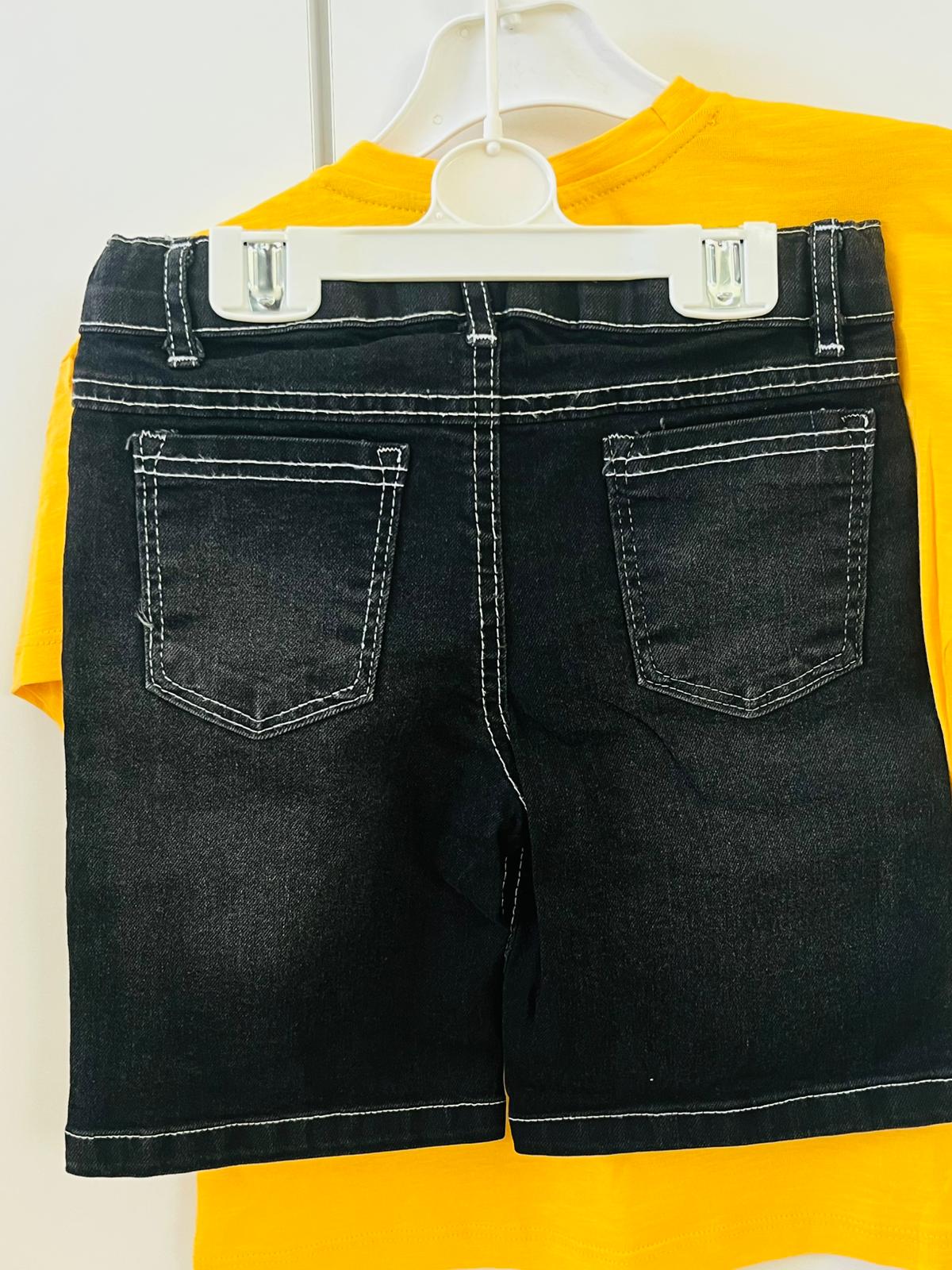 sarı renk t-shırt çep detaylı 2’li şort takım