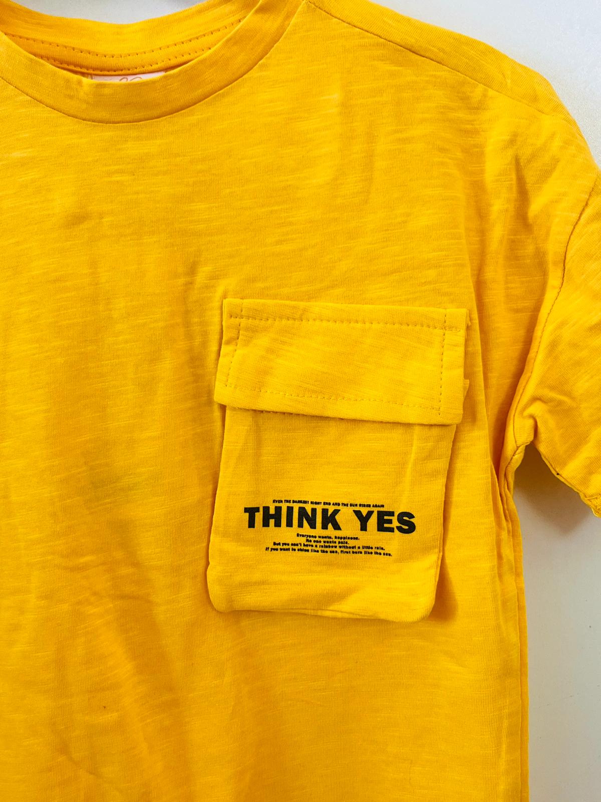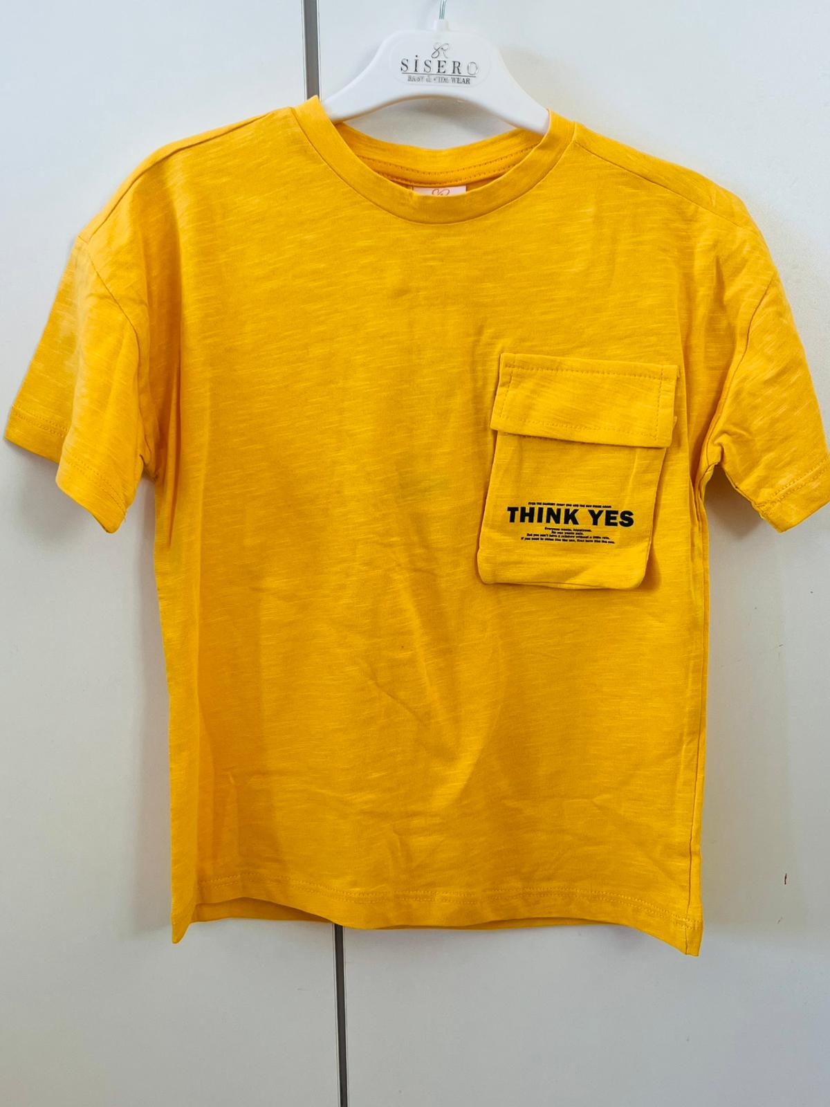 üstü cep detaylı sarı t-shırt